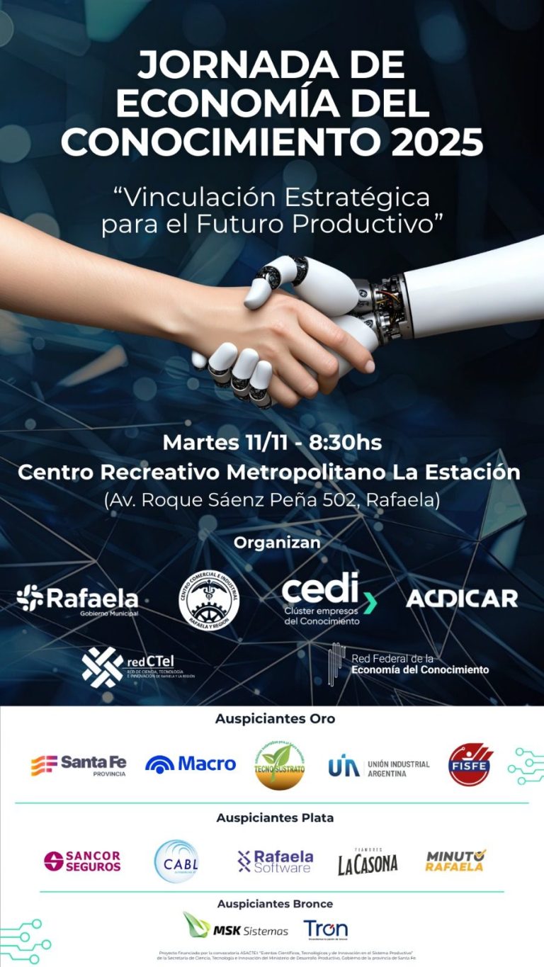 Te invitamos a participar en la Jornada de Economía del Conocimiento 2025 en Rafaela: “Vinculación estratégica para el futuro productivo”, evento orientado a fortalecer la